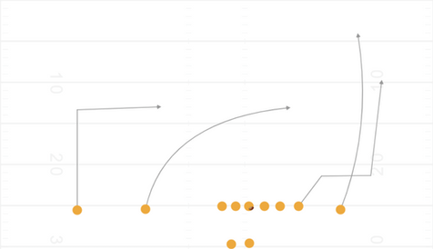 You start to see the value of the pure progression stuff when teams have had success with disguises. Defenses have gotten increasingly good at this kind of thing. All 3 plays above feature some type of disguise. The below one does as well.